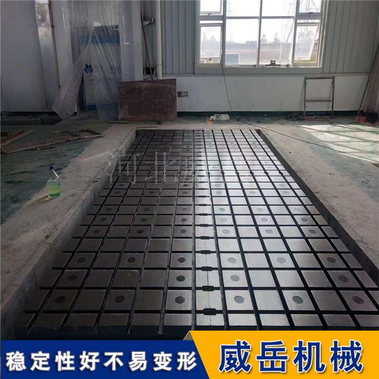 結(jié)構(gòu)方面:工作面上可加工T型槽、U型槽、圓孔等,用于固定試驗設(shè)備或清理加工時產(chǎn)生的鐵屑。標準規(guī)格從1000×1000mm到8000×3000mm不等,超出范圍可拼接或定制。