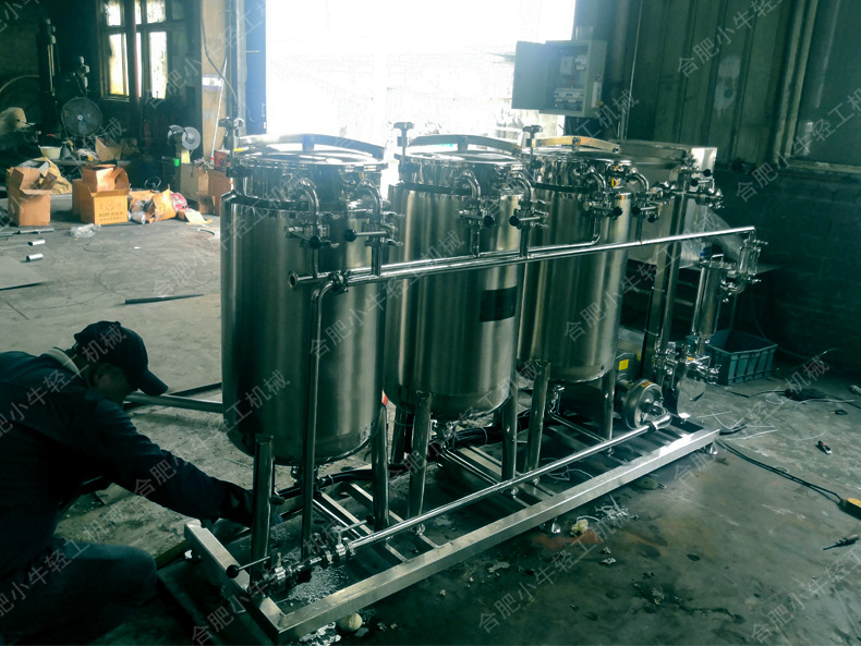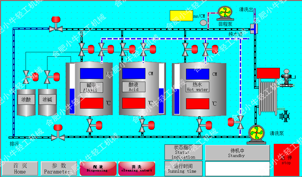 CIP(clean in place)系統(tǒng)俗稱就地清洗系統(tǒng),是在食品、飲料、乳品、果汁、酒類、制藥等行業(yè)領(lǐng)域中廣泛應(yīng)用的一種清洗設(shè)備。主要用于機(jī)械化程度較高的生產(chǎn)企業(yè)對衛(wèi)生級別要求較嚴(yán)格的生產(chǎn)設(shè)備的清洗、凈化使用。就地清洗是指不用拆開或移動裝置,采用高溫、一定濃度的洗凈液,對生產(chǎn)設(shè)備內(nèi)壁與物料的接觸面洗凈,如物料管道系統(tǒng)、泵腔、閥體、罐內(nèi)、換熱器內(nèi)等。
