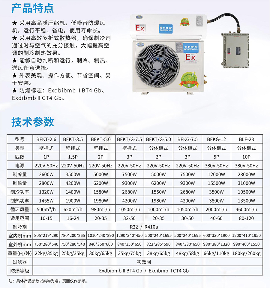 百科特奧防爆空調,甘南防爆空調適用于1區、2區危險氣體場所;2.ⅡA、ⅡB類T1~T4組爆炸性氣體或蒸氣環境;有溫控需求的車間、試驗室、控制室等場所。工作原理:一、防爆電氣設備的防爆型式。