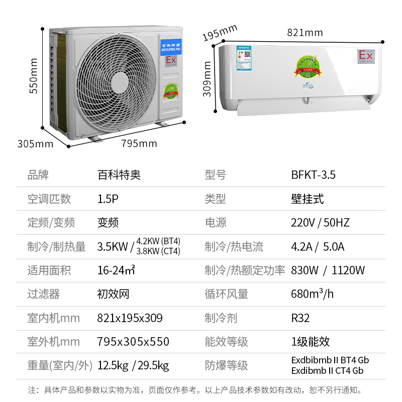 設備外殼表面有可能產生危險溫度,如壓縮機、輔助電加熱器等。百科特奧防爆空調,廣州防爆空調廠家。印刷電路板有發生短路、開路等故障釋放能量引燃可燃性氣體的可能。普通空調的布線、電氣安裝不符合GB3836115—2000《爆炸性氣體環境用電氣設備第15部分:危險場所電氣安裝(煤礦除外)》標準要求,也存在產生火花、電弧或高溫的可能。