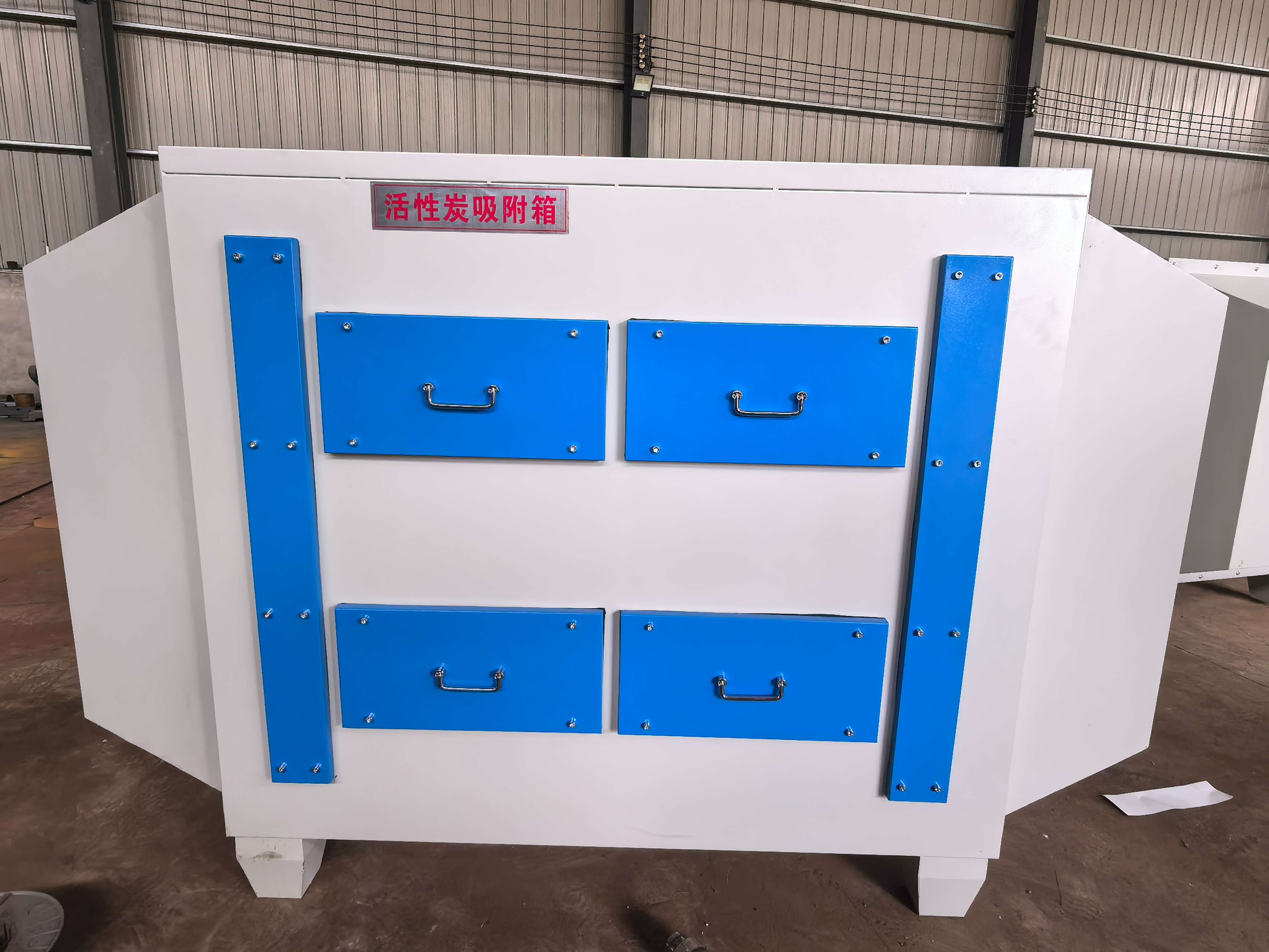 活性炭吸附箱的工作原理是利用活性炭吸附劑表面的吸附能力 使廢氣與大表面的多孔性活性炭吸附劑相接觸 廢...