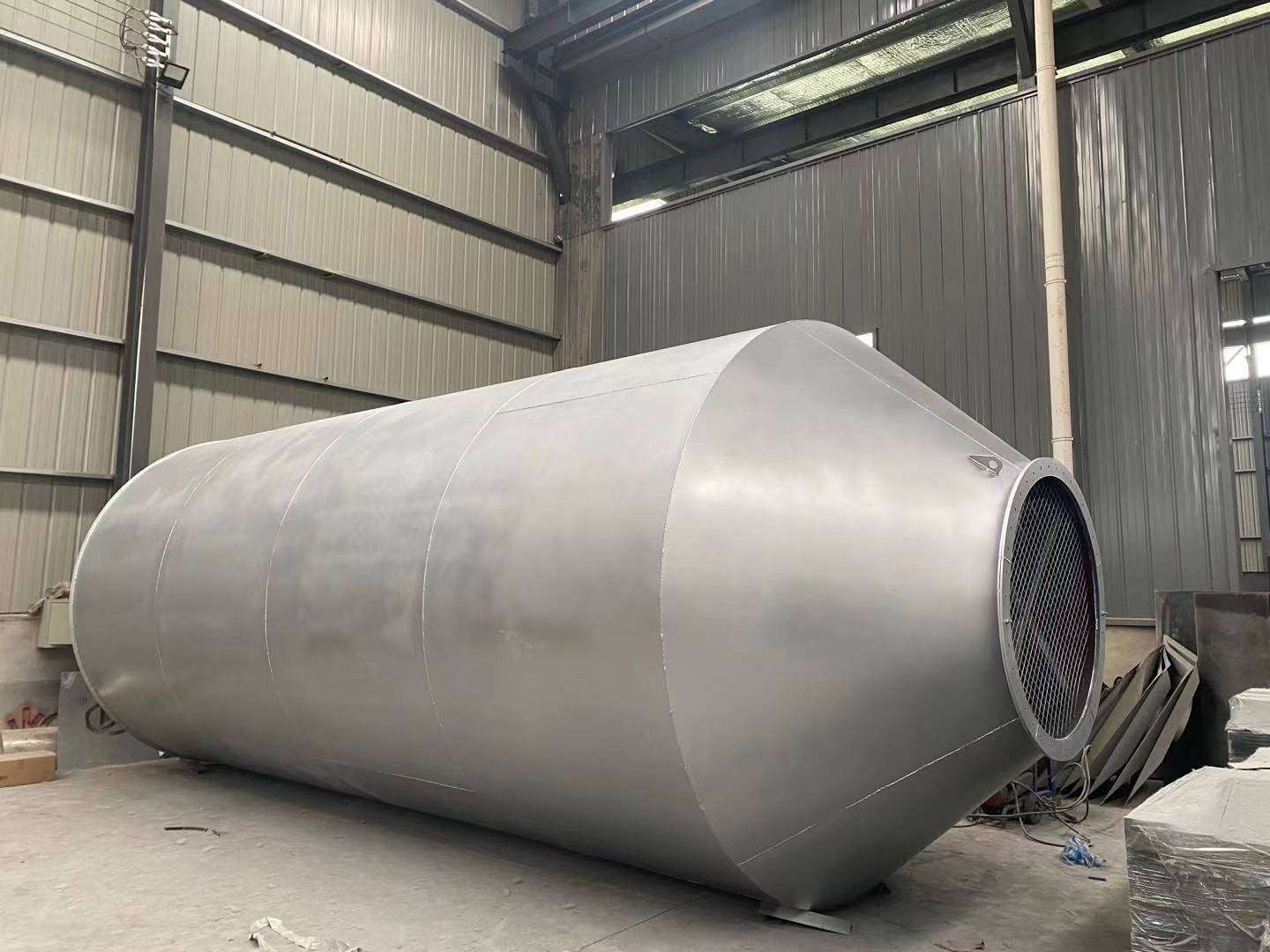 噴淋塔的作用原理 含塵氣體和黑煙尾氣通過煙道進入噴淋塔的底錐 粉塵被水浴洗滌 處理后的黑煙 粉塵等污染物通過水浴后 部分塵粒隨氣體運動 與沖擊水霧和循環噴淋水相結合 在主體內進一步充分混合 此時 含塵氣體中的塵粒被水捕集 灰水被離心或濾出 由于重力作用通過塔壁流入循環池 凈化后的氣體排出 廢水循環池...