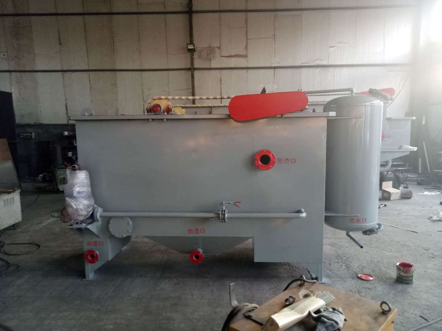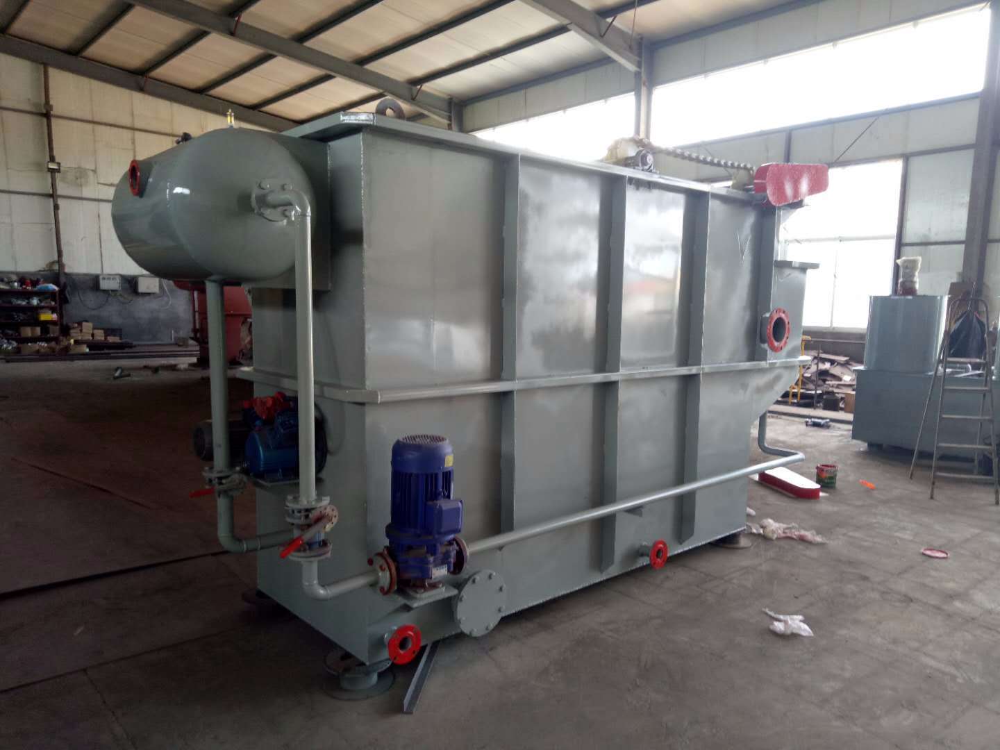 氣浮機主要起固液分離作用 去除廢水中的懸浮物 油污 色度 同時可以降低 等污染物 主要利用溶氣系統產生的溶氣水中的微氣泡 與水中的懸浮物絮體碰撞粘合在一起 形成 微小氣泡 懸浮物復合體 該 微小氣泡 懸浮物復合體 逐漸共聚 體積變大 形成比重小于 的 微小氣泡 懸浮物復合體 溶氣水在 的工作壓力的情...