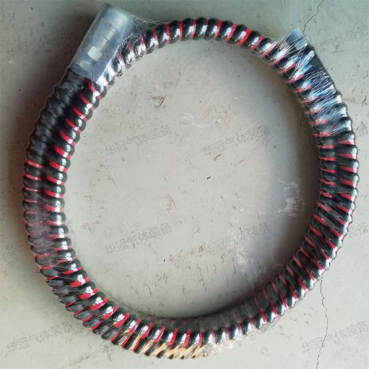 壓縮天然氣軟管 專門為輸送高壓壓縮天然氣 而設計 我們的產品滿足甚至超過行業標準 要求 是客戶輸送 的理想選擇 標準 材質 內膠為導電聚酰胺 高韌性纖維編織加強層 外膠為抗磨蝕紅色聚氨酯 工作溫度 工作壓力 安全系數 導電性 電阻率低于 符合 標準