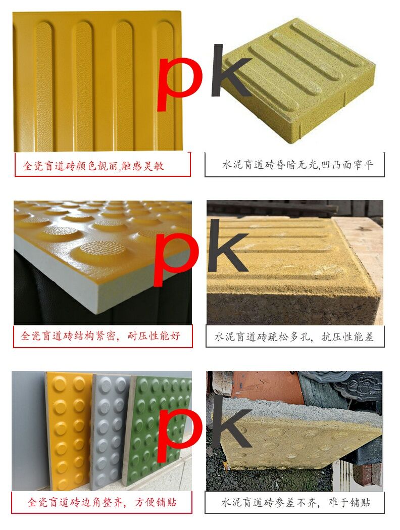 盲道講求實用、安全和人性化,不僅要引導殘疾人行走,還要保護他們行進中的安全,所以選擇優質的盲道磚也是至關重要的,我公司是一家專業生產優質全瓷盲道磚的企業,所生產的“全瓷盲道磚”以外觀色澤靚麗、觸覺靈敏、耐磨度高使用壽命長等特點聞名,其現在已被廣泛應用于全國超百分之七十的城市高鐵站、地鐵站、火車站、機場等場所,產品質量備受好評,可以說“全瓷盲道磚”
