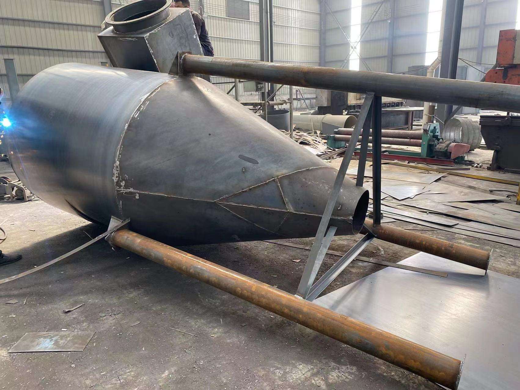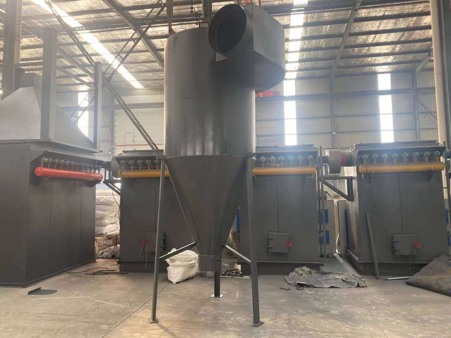 旋風除塵器的主要作用是去除氣體中的粉塵,達到凈化空氣的目的。通過高速旋轉氣流,將氣體中的粉塵顆粒引入除塵器內部,使其受到離心力的作用,從而從氣體中分離出來。與傳統的過濾式除塵器相比,旋風除塵器具有較高的除塵效率,能夠有效地去除PM2.5等微小顆粒物。 氣固分離 旋風除塵器不僅能夠去除氣體中的粉塵,還能夠將固體顆粒與氣體進行有效分離。在工業生產過程中,常常會產生大量的廢氣和廢渣,其中含有大量的固體顆粒,如不及時處理將會對環境和設備造成損害。旋風除塵器能夠通過高速旋轉的氣流將這些固體顆粒從廢氣中分離出來,從而實現氣固分離。 濕式除塵 有些工業生產過程中會產生大量的含濕氣體,如鑄造、冶煉、化工等行業。這些氣體中含有的水分和粉塵混合在一起,難以進行處理。旋風除