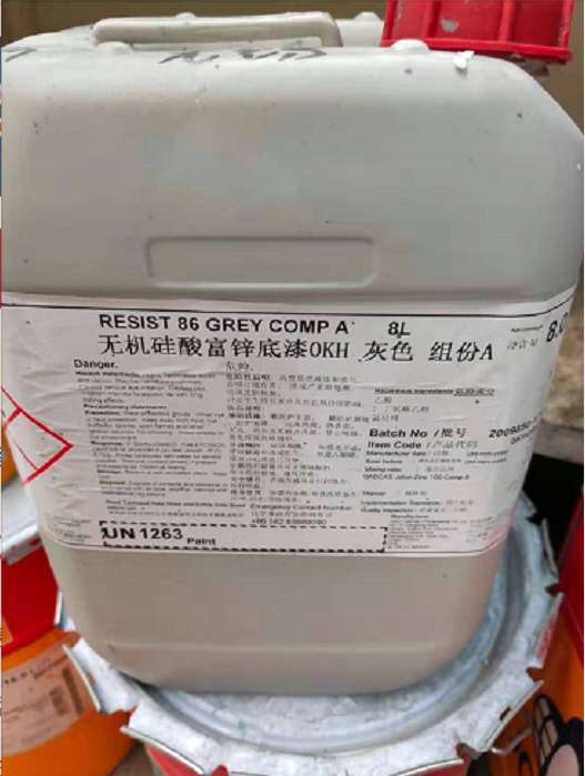 在飲用水艙施工之前用佐敦28號(hào)稀釋劑沖洗施工設(shè)備;施工后用佐敦17號(hào)稀釋劑清洗設(shè)備。