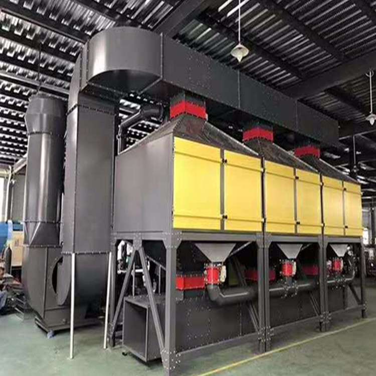 在工業生產過程中,排放的尾氣通過引風機進入設備的旋轉閥,通過選轉閥將進口氣體和出口氣體分開。氣體首先通過陶瓷材料填充層(底層)預熱后發生熱量的儲備和熱交換,其溫度幾乎達到催化層(中層)進行催化氧化所設定的溫度,這時其中部分污染物氧化;廢氣繼續通過加熱區(上層,可采用電加熱方式或然氣加熱方式)升溫,并維持在設定溫度;其再進入催化層完成催化氧化反應,即反應生成CO2和H2O,并釋放大量的熱量,以達到預期的處理效果。經催化氧化后的氣體進入其它的陶瓷填充層,回收后通過旋轉閥排放到大氣中,凈化后排氣溫度僅略高于廢氣處理前的溫度。系統連續運轉、自動切換。通過旋轉閥工作,所有的陶瓷填充層均完成加熱、凈化的循環步驟,熱量得以回收。