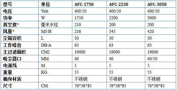 可選升級配置:可移動款式;鑄鋁吸塵口;消音器;AFCvac壓力聲光報警裝置等。