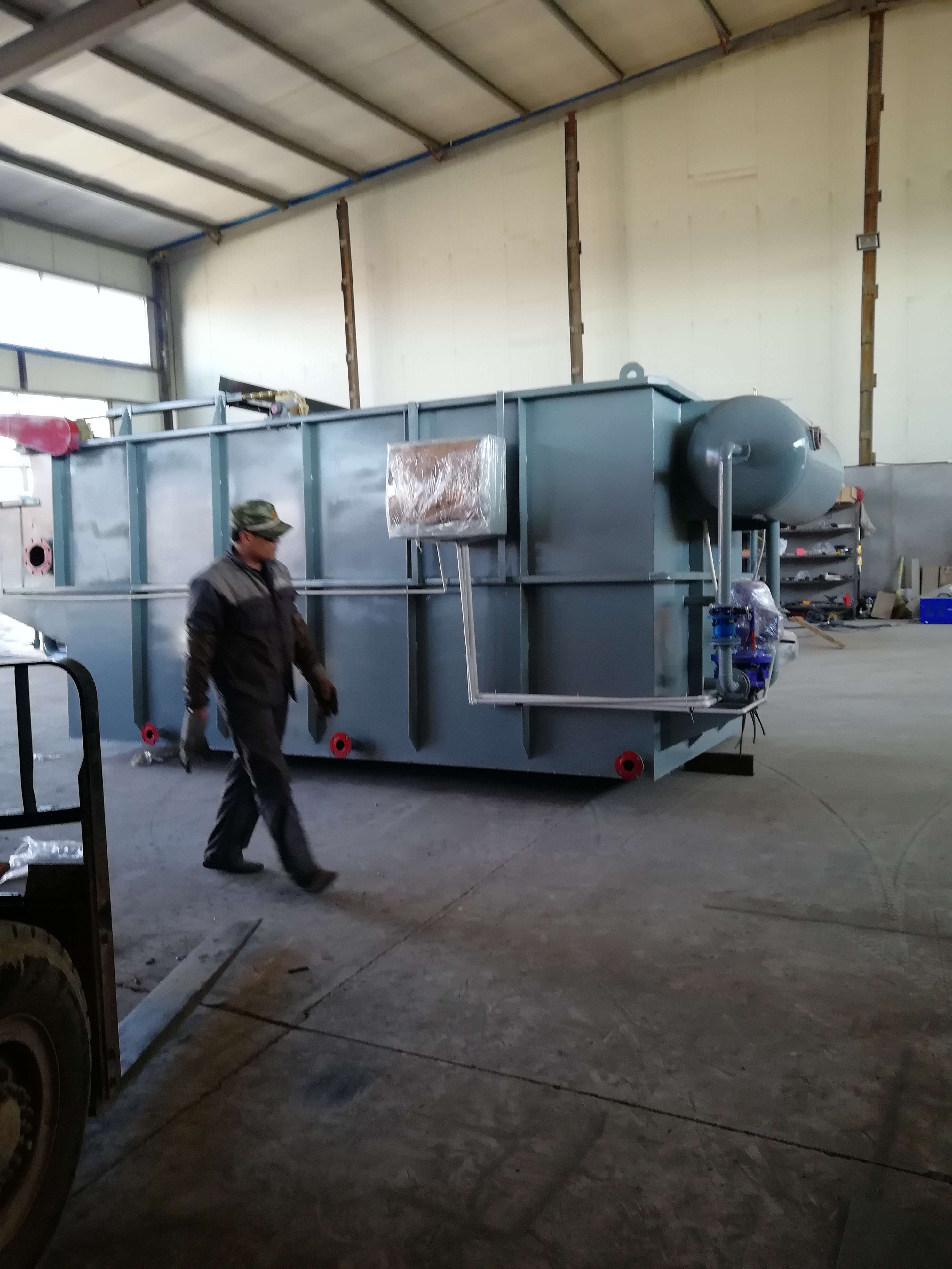 氣浮機主要起固液分離作用,去除廢水中的懸浮物(SS),油污、色度,同時可以降低COD、BOD等污染物,主要利用溶氣系統產生的溶氣水中的微氣泡,與水中的懸浮物絮體碰撞粘合在一起,形成“微小氣泡—懸浮物復合體”,該“微小氣泡—懸浮物復合體”,逐漸共聚,體積變大,形成比重小于1的“微小氣泡—懸浮物復合體”。溶氣水在0.2—0.5MPa的工作壓力的情況下,使空氣最大限度地溶入水中,通過減壓釋放,形成直徑20μm—30μm左右的微小氣泡。
