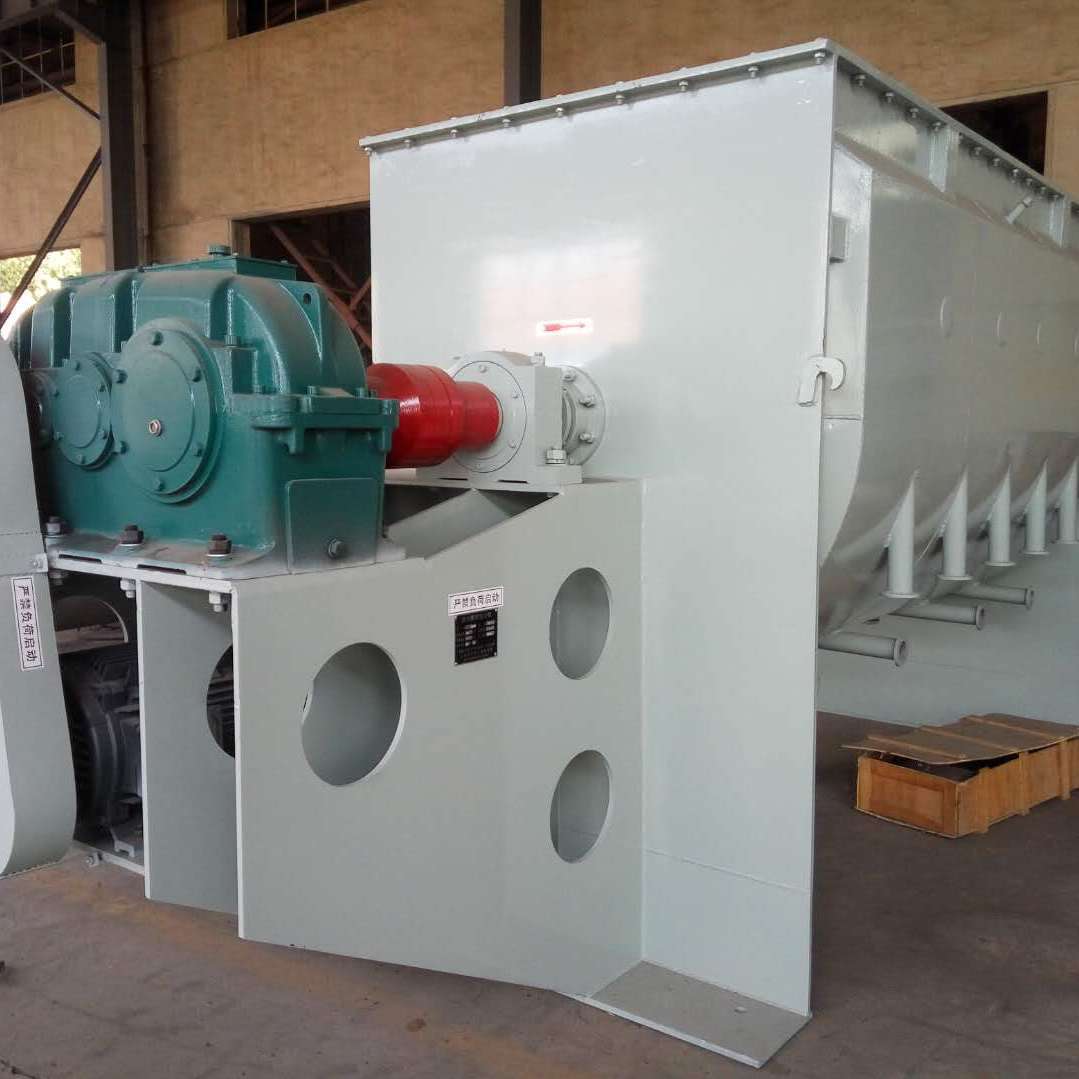 雙螺旋混合機結構主要由傳動、螺旋、筒體、筒蓋、出料閥及噴液裝置等部件組成。