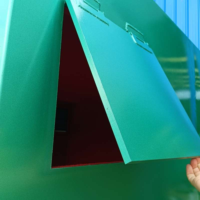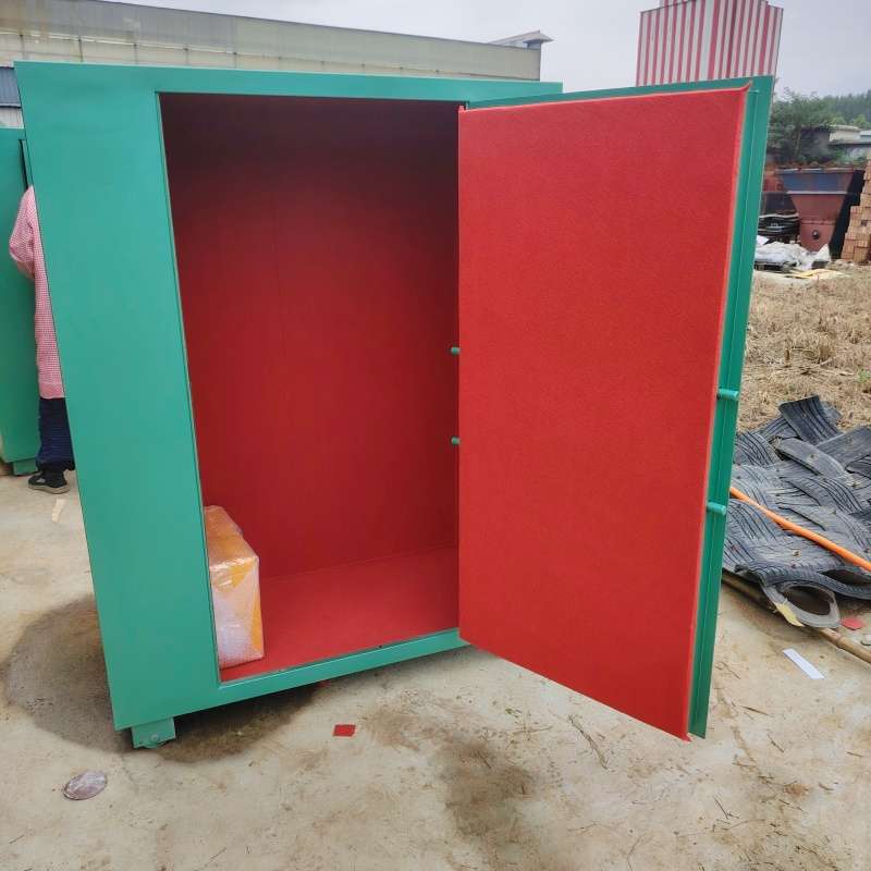 它外部采用10mm防爆鋼板焊接,內部有防靜電木板為內襯,最里面有防火防靜電墊,鎖具是采用內外雙防盜鎖,安全性能非常可靠。避炮棚下安裝有行走輪,當露天礦采場的爆破作業地點變化導致避炮棚的位置也要發生變化時,利用鋼絲繩連接前裝機與移動避炮棚,前裝機即可拖動移動避炮棚到達指定位置,實現快速移動的目的,而無需使用起重機。新型避炮棚的優點就是結構簡單、移動方便,即節省移動時間又降低移動成本,同時可以更有效地保證礦山的正常生產