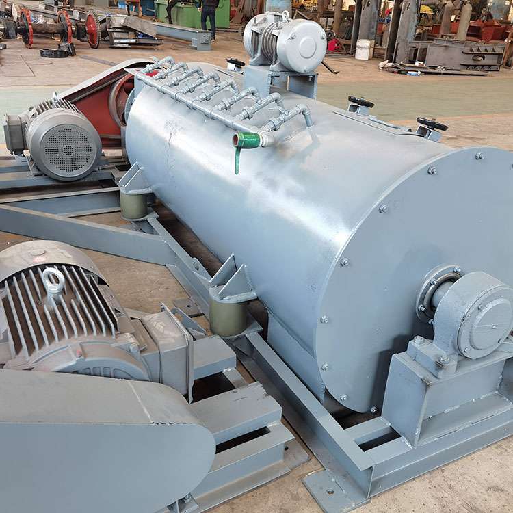 加濕攪拌機是將粉狀物料進行噴水攪拌、混合的高效設備。主要使用在火力發電廠的除塵器下,也可供化工、治金、礦山、建材等行業使用。通過控制加水量,以達到全適的濕度要求。采用兩組螺旋葉片進行攪拌,攪拌效率高,占地面積少。螺旋葉片采用戶高效耐磨特種合金或復合陶瓷,使用壽命長等特點。