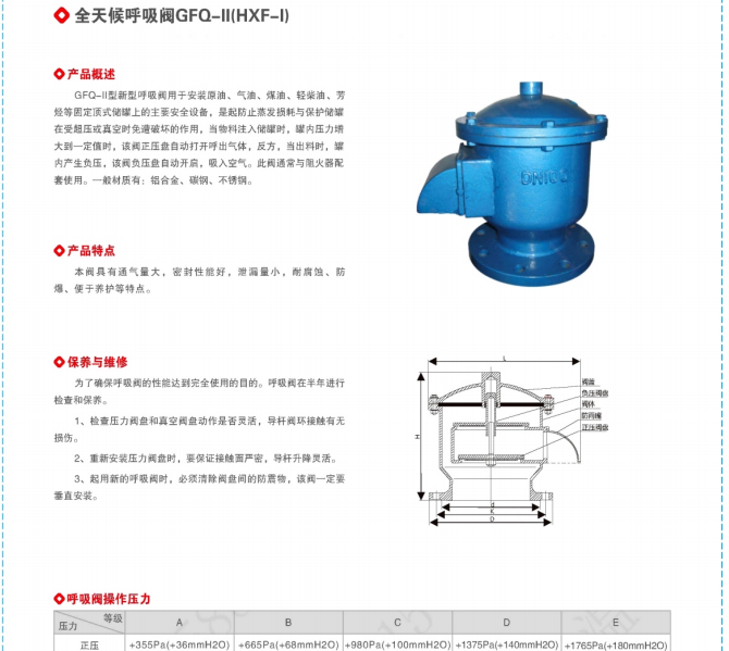 全天候呼吸閥多種型號,產品特點:通氣量大,密封性能好,泄漏量小,耐腐蝕、防爆、便于養護等特點。