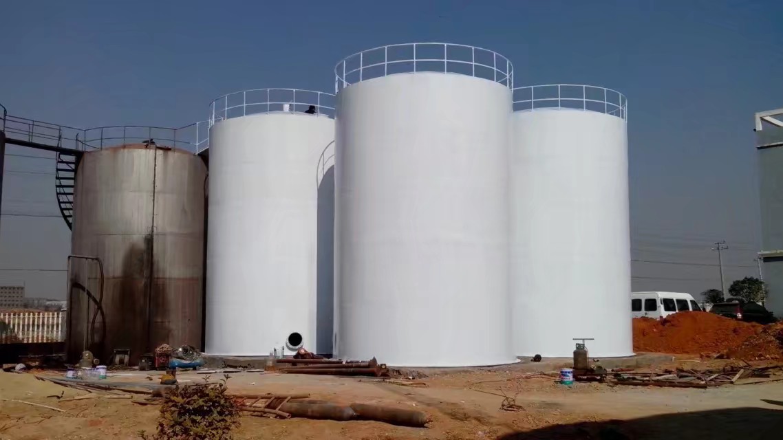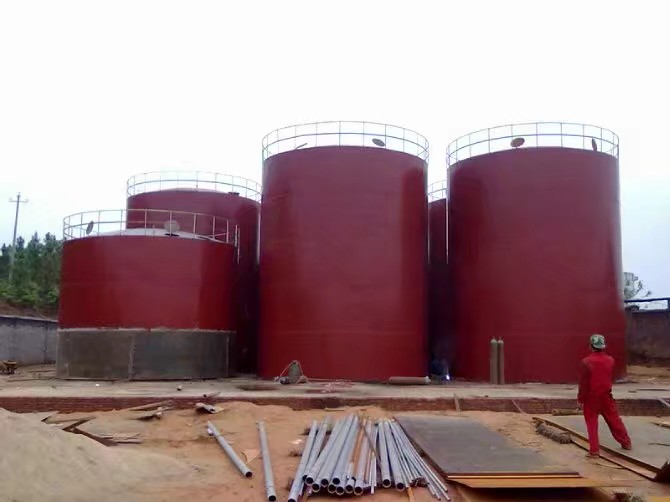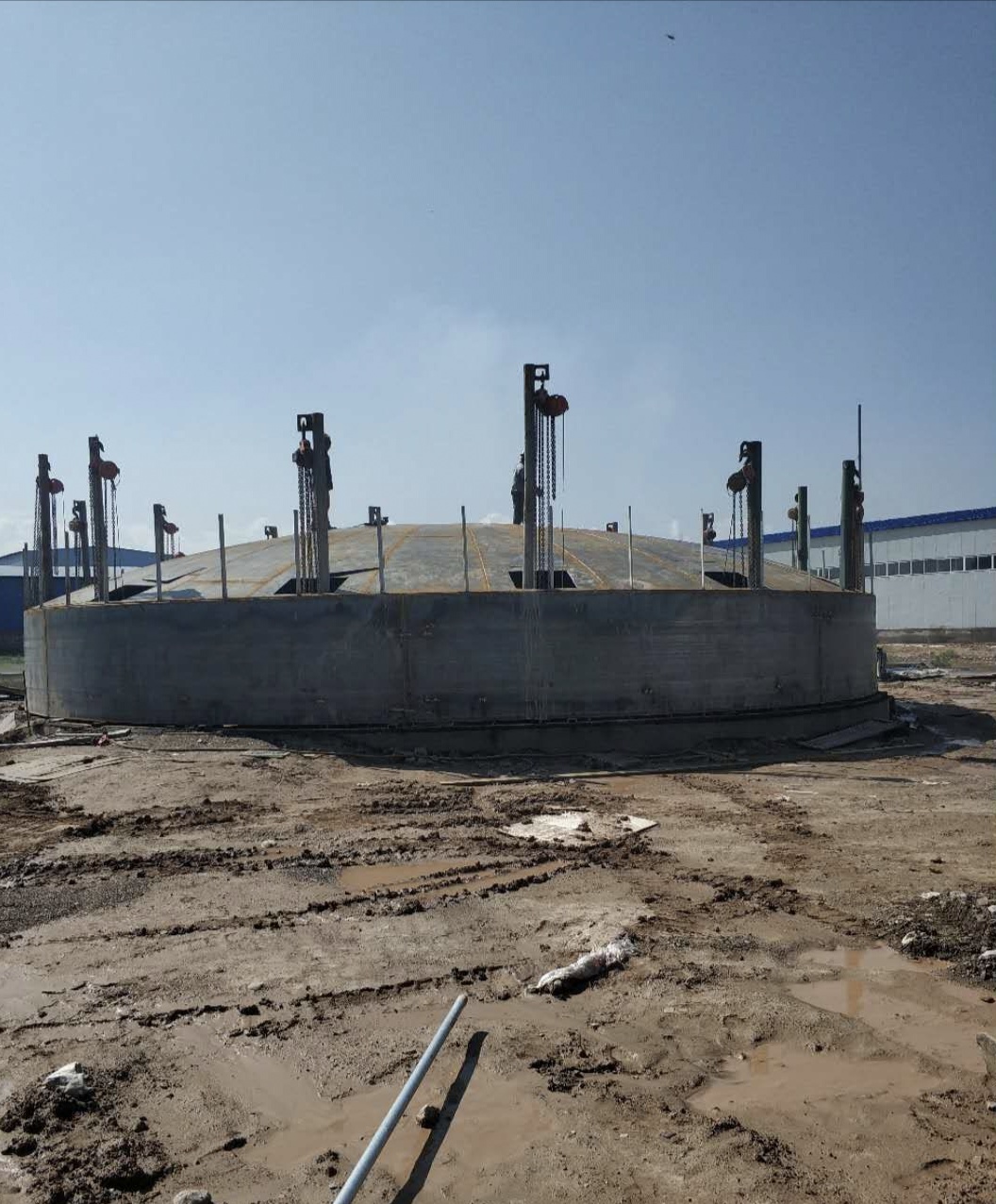 罐頂:罐頂有多塊扇形板組對焊接而成球冠狀,罐頂內側采用扁鋼制成加強筋,各個扇形板之間采用搭接焊縫,整個罐頂與罐壁板上部的角鋼圈(或稱鎖口)焊接成一體。