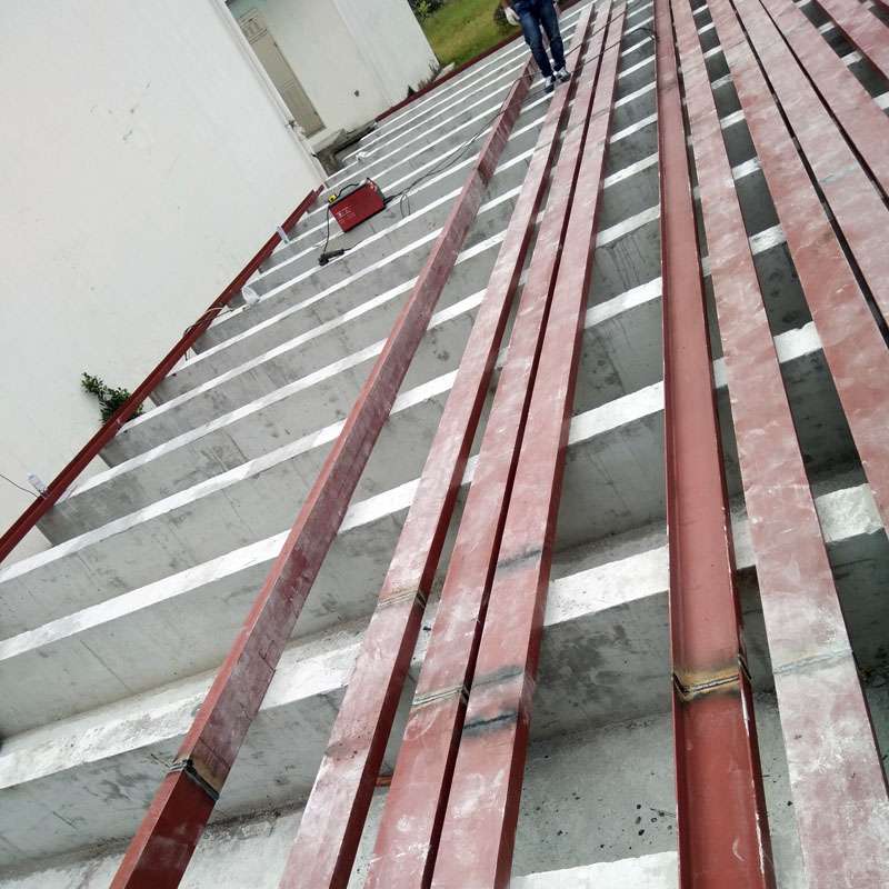 1、焊接底架:根據水箱板塊尺寸確定槽鋼的間距,首先將槽鋼點焊固定,用水平尺 校 對,確保其平整然后再整體焊接。