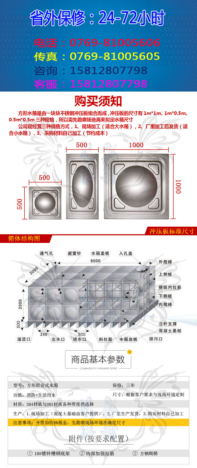 廣東不銹鋼方形水箱 不銹鋼方形水箱 工業不銹鋼水箱上門安裝