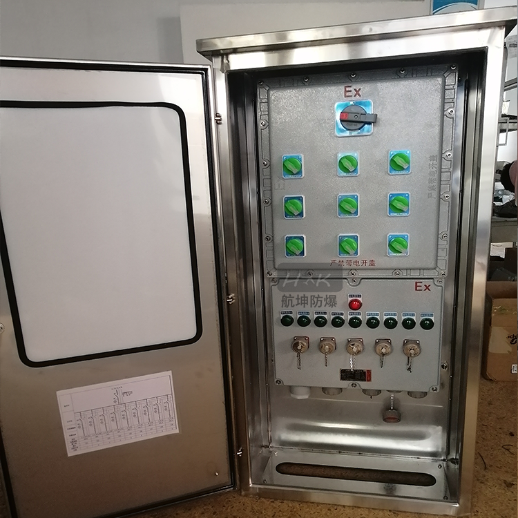 止口結構,接線箱為增安型。主箱內可安裝DZ47、C65N等小型斷路器及信號燈、交流接觸器、熱繼