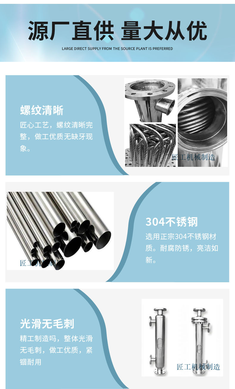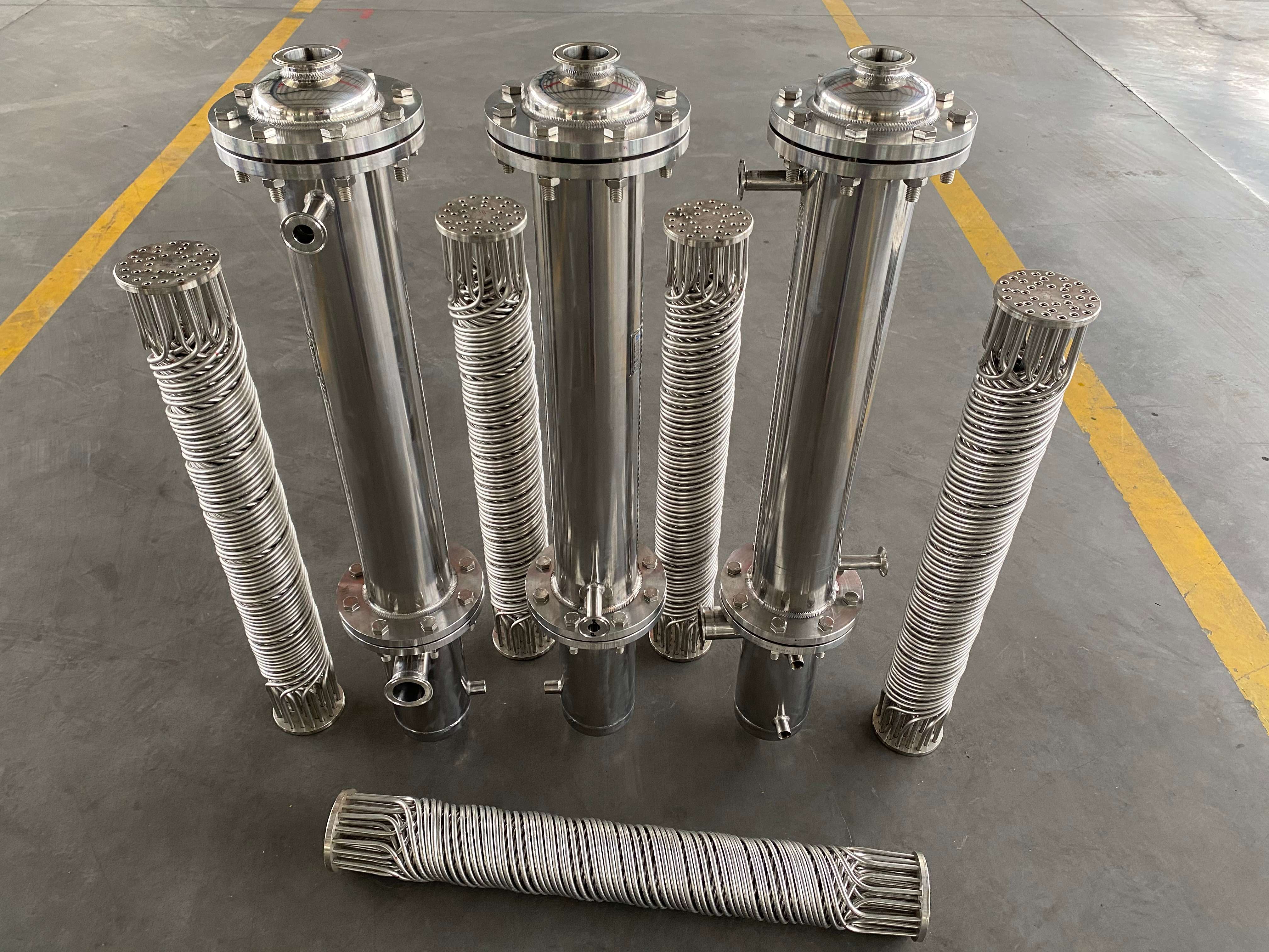 獨特的螺旋纏繞管式結構,使物料和循環水在換熱器內形成了很強的湍流流動狀態,使冷熱介質和管壁充分接觸,大大提高了換熱效果。