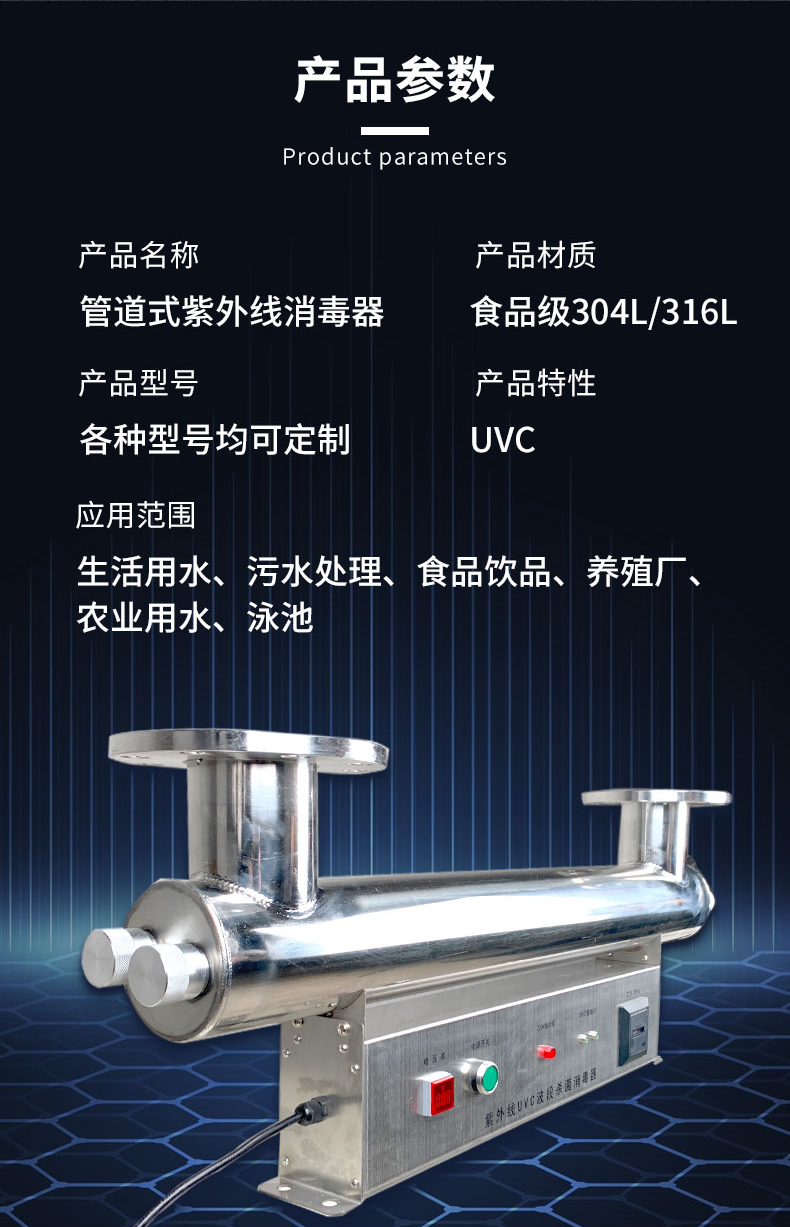 紫外線消毒器管道式消毒機污水泳池過流式殺菌器水處理凈化器設備