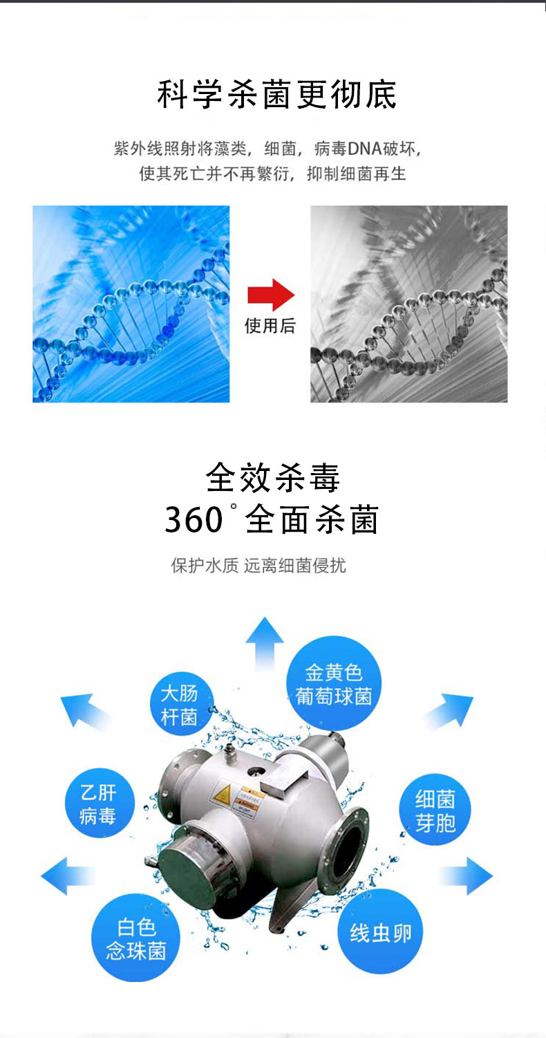 紫外線消毒器管道式消毒機污水泳池過流式殺菌器水處理凈化器設備
