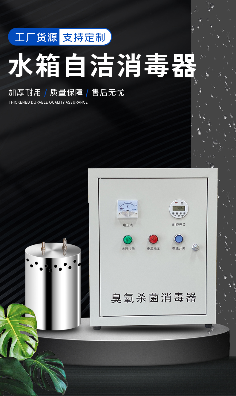 水箱消毒器是我公司根據目前水池(水箱)水質長期滯存,經常遭受病菌、微生物侵襲、污染嚴重的現狀,而開發研制的高新產品。內置式水箱自潔消毒器把臭氧制取技術、高氧化技術、自動控制、射流、罐、臭氧混合泵、壓差混合多重技術融為一體,具有造價低、性價比高、安全衛生、方便快捷、效果顯著、經濟使用等特點。