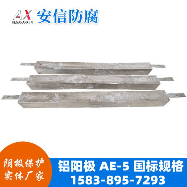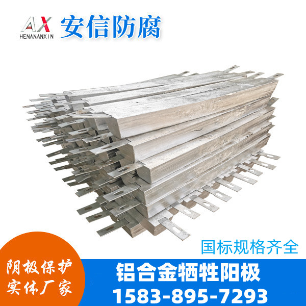 常用的鋁合金陽(yáng)極有Al-Zn-In系和Al-Zn-Hg系陽(yáng)極,適用于海水中的船舶、碼頭港口與海洋設(shè)施、海水冷卻水系統(tǒng)和儲(chǔ)罐沉積水部位等構(gòu)筑物的陰極保護(hù)。鋁合金陽(yáng)極生產(chǎn)執(zhí)行GB/T 4948-2002《鋁--銦系合金犧牲陽(yáng)極》。