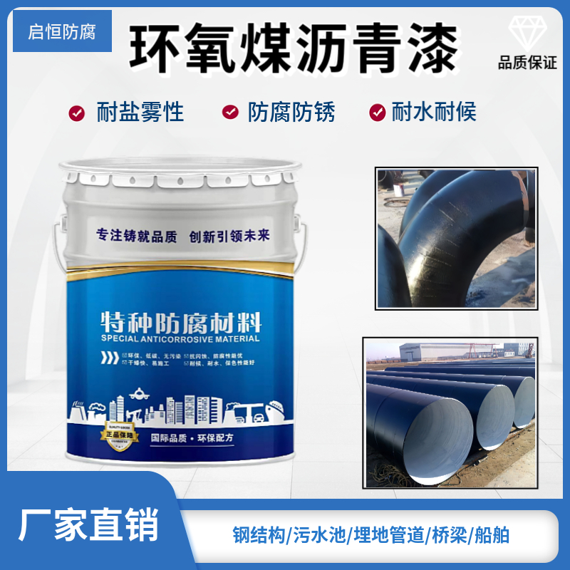 環氧煤瀝青漆是在傳統環氧煤瀝青涂料的基礎上,加入中外公認的長壽型氯磺化聚乙烯橡膠、云母氧化鐵、其它耐蝕顏填料、特種添加劑及活性溶劑等,經先進工藝制備而成的雙組分長效重防腐涂料。適用于永久性或部分浸于水下的鋼結構、化工廠、污水處理池、煉油廠的埋地管道和鋼質貯罐;埋設水泥結構、煤氣柜內壁、底板、汽車底盤、水泥制品、煤礦礦井支架、礦山井下設施和海洋碼頭設施、木制品、水下結構、碼頭鋼欄、供熱管道、供水管道、供氣管道、冷卻水、石油管道等。