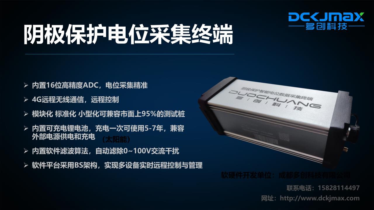 DC-YBT001/4G是一款戶外金屬管道陰極保護,智能電位采集終端,該終端系統由成都多創科技有限公司自主研發,針對各領域中易腐蝕管道的,陰極保護效果的智能遠程監測的高科技產品。傳統的管道陰極保護的效果檢測,需要測試人員手執檢測儀器(萬用表等),前往戶外測試樁逐點逐位測試、記錄,數據準確度難以保證,并且耗工耗時,野外跋涉還存在極大外派人員安全隱患。本產品的應用,可完全取代人工測量,讓此項工作更為高效精準。