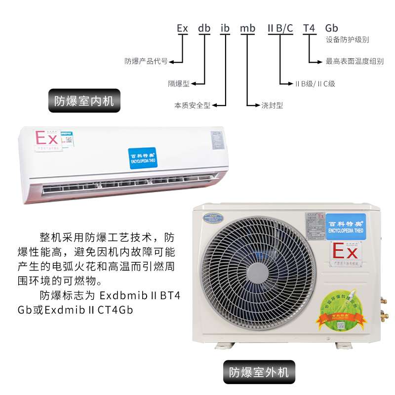 百科特奧防爆空調掛式柜式 防爆等級:ExdbibmbIIBT4Gb/ExdibmbIICT4Gb可選。