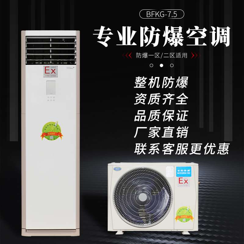 寧波防爆空調,3匹寧波防爆空調BFKG-7.5,大家對于防爆空調,可能相較于其他特種空調會稍微陌生一些,可不管大家對它熟悉與否,在某些工業場所,它都有著不可替代的位置,在石油、化工等部門的企業中,在許多存在易燃易爆場所的操作室、生產車間、倉庫需要恒溫環境才能保證正常的生產和工作。另外,爆炸性氣體環境中的工作人員也希望在一個溫度適宜的環境下工作,以提高工作效率,保證產品質量。但是普通空調在這些有易燃易爆氣體的危險場所使用,有發生爆炸的可能性,因此,在這類場所必須選用防爆型空調,防爆空調已經成為易燃易爆場所重要的設備。該類防爆產品可應用于石油化工、物流、車間、冶金、紡織、食物、生物工程、醫藥、港灣、棧房和特殊工程等爆炸性環境中,有溫度控制要求的場合;1區、2區危險氣體處所,IIA、IIB、IIC類T1-T4組爆炸性氣體或蒸汽環境。百科特奧防爆空調掛式柜式 防爆等級:ExdbibmbIIBT4Gb/ExdibmbIICT4Gb可選。