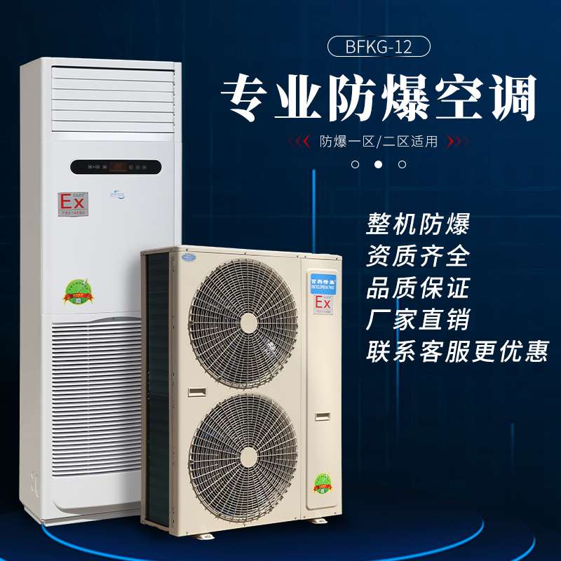 衢州防爆空調,百科特奧5匹衢州防爆空調BFKG-12 http://www.ex-fbkt.com系列機型通過特殊防爆技術加工處理,可廣泛應用于1區、2區防爆級別,涵蓋、科研、石油、化工、醫藥、加工制造、生物制藥等多種行業,為存在ⅡA、ⅡB級,T1~T4組可燃性氣體、蒸汽與空氣混合形成的易引發爆炸的危險場所,是針對有溫度控制要求場所設計的特種調溫空調設備,系列產品均通過國家防爆電氣產品質量監督檢測中心檢驗,獲得國家防爆電氣設備防爆合格證:防爆空調機其外形美觀,設計合理并具有安裝維修方便等特點,全系列防爆產品內部采用壓縮機、微電腦控制、數字顯示,具有噪聲低、性能穩定、操作簡便等優點。深受廣大特需行業客戶喜愛,并以部分錄入特需行業采購名錄。