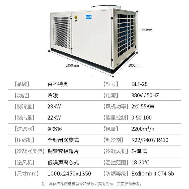 BLF-28(臥式10P防爆空調)制冷量:28kw制熱量22kw風量2200m3/h余壓200Pa