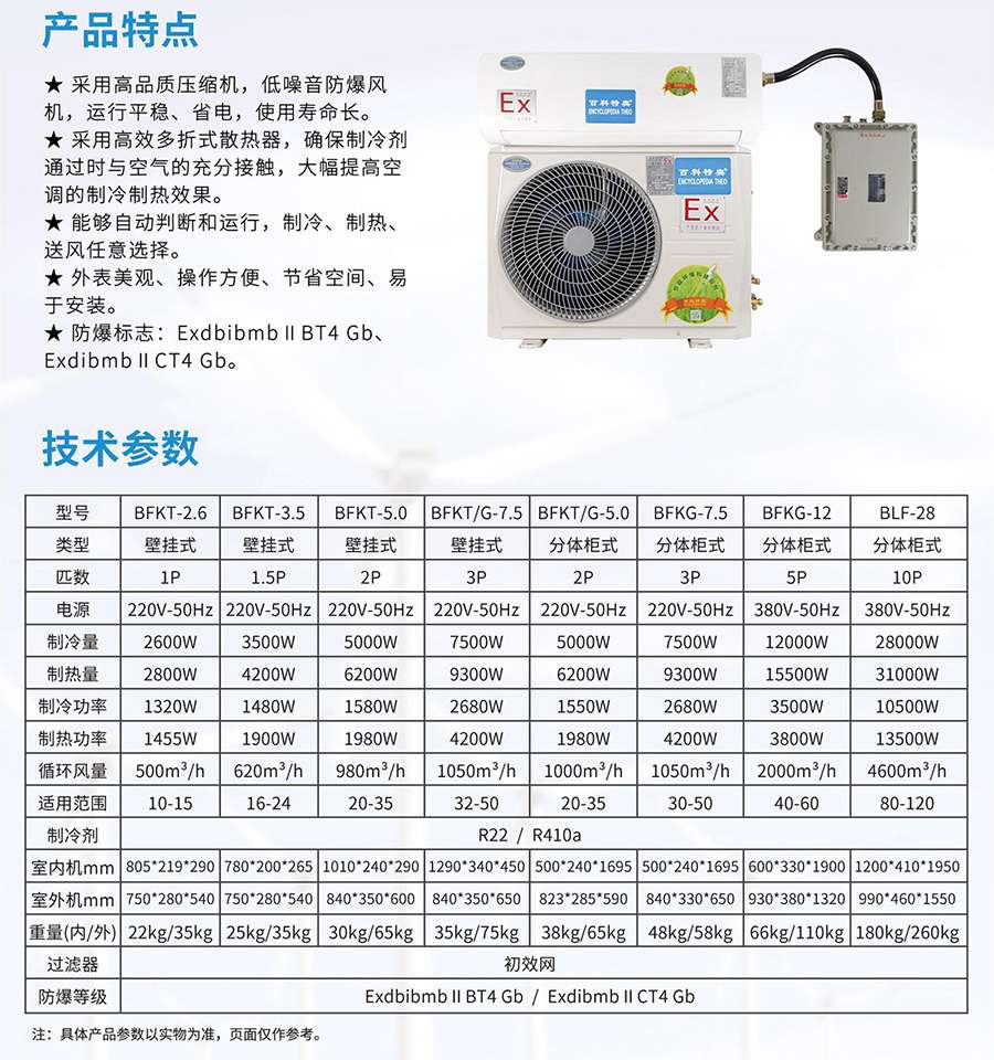 百科特奧防爆空調,安順防爆空調廠家。http://www.ex-fbkt.com “五一”期間多地氣溫超過三十五度,一年中最熱的季節已經到來,空調產品銷售也進入最火熱的階段,然而在石油、化工等工業過程的許多生產場合,存在著易燃、易爆的氣體、粉塵或其他易燃易爆材料。