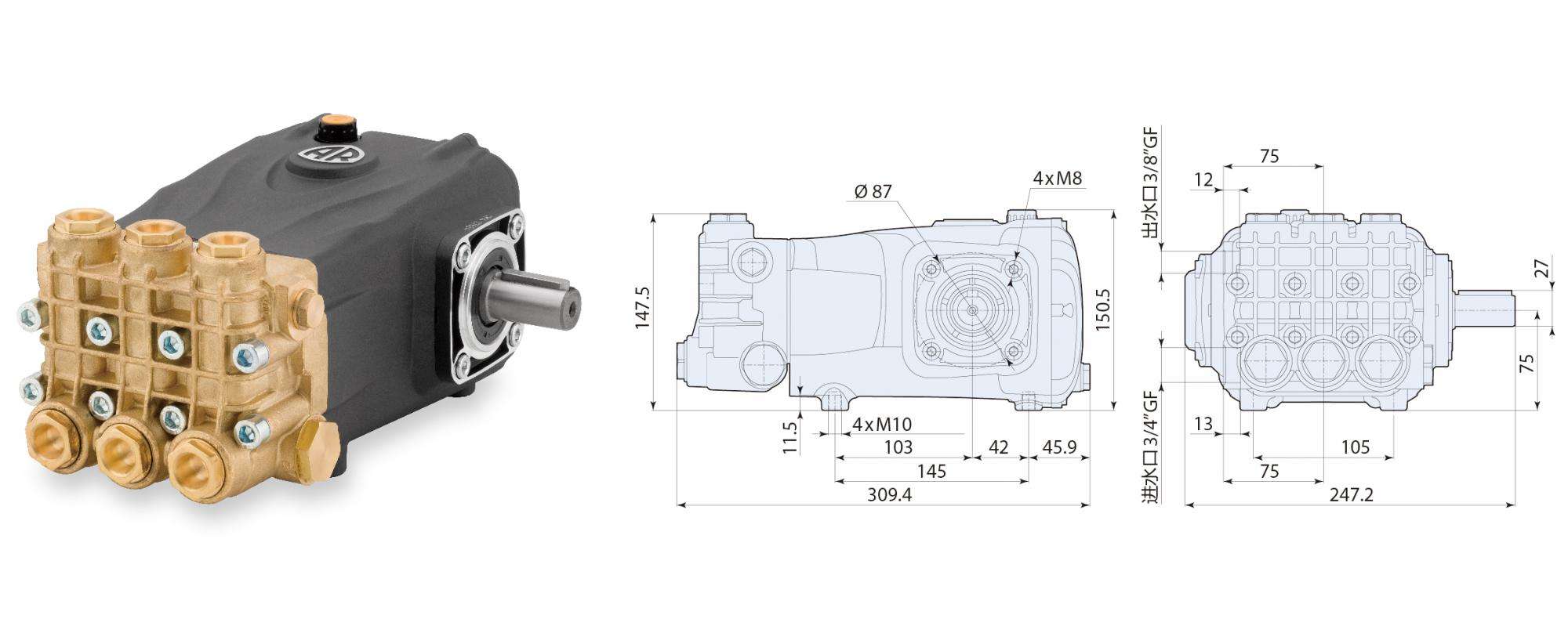RGL41.20(完整型號:RGL41.20N) 是意大利 AR(Annovi Reverberi) 三柱塞臥式高壓柱塞泵,主打大流量、中高壓,用于工業(yè)清洗、市政疏通、造霧、養(yǎng)殖場清潔等場景。 一、核心參數(shù)(標準 1450rpm) 流量:41 L/min(2.46 m3/h) 額定壓力:200 bar(20 MPa) 轉(zhuǎn)速:1450 rpm(標準電機轉(zhuǎn)速) 匹配功率:16 kW(380V 三相) 柱塞數(shù):3 柱塞(陶瓷柱塞,耐磨) 泵頭材質(zhì):鍛黃銅 進水口:3/4" 內(nèi)螺紋 出水口:3/8&qu