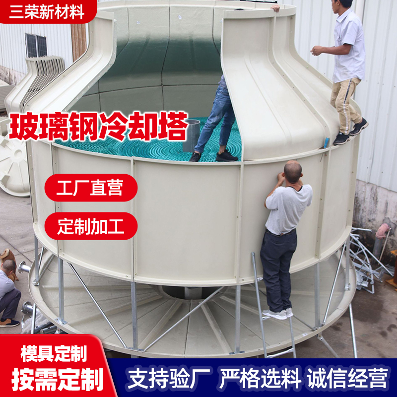 開式冷卻塔是利用水和空氣的接觸,通過蒸發作用來散去工業上或制冷空調中產生的廢熱的一種設備?;驹硎牵焊稍铮ǖ挽手担┑目諝饨涍^風機的抽動后,自進風網處進入冷卻塔內;飽和蒸汽分壓力大的高溫水分子向壓力低的空氣流動,濕熱(高焓值)的水自播水系統灑入塔內。當水滴和空氣接觸時,一方面由于空氣與水接觸的直接傳熱,另一方面由于水蒸汽表面和空氣之間存在壓力差,在壓力的作用下產生蒸發現象,即通過與不飽和干空氣熱傳遞帶走水的顯熱,部分水蒸發將水中的潛熱帶走,從而達到給冷卻水降溫的目地。