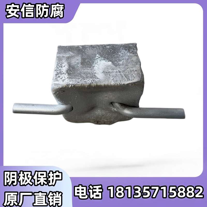 犧牲陽極保護法是利用電化學原理,由活潑金屬(鋅、鋁等)在海水介質中與被保護材料構成電性連接,自身作為陽極被加速腐蝕,使被保護材料成為陰極而得到保護。常用的犧牲陽極材料主要有鋅基、鋁基和鎂基三種。用犧牲陽極保護金屬不需要外加電源、不會干擾臨近金屬設施、電流分散能力好、易于管理和維護,在防腐蝕工程中得到了廣泛的應用。鎂犧牲陽極比其他犧牲陽極密度小、電容量大、電位負、極化率低對鋼鐵的驅動電壓大,特別適用于電阻率較高的土壤和淡水中金屬中件的保護。