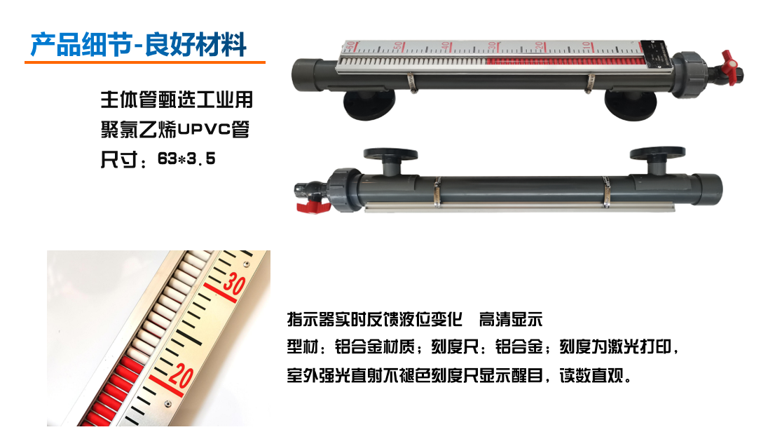 UHZ型UPVC磁翻板液位計,適用于工業生產中各種防腐貯罐內液體介質的液面指示和測量。對工作溫度、壓力不高的輕腐蝕溶液尤其適用。UPVC磁翻板液位計結構先進,質地輕、阻力小,密封性好,經濟實惠。
