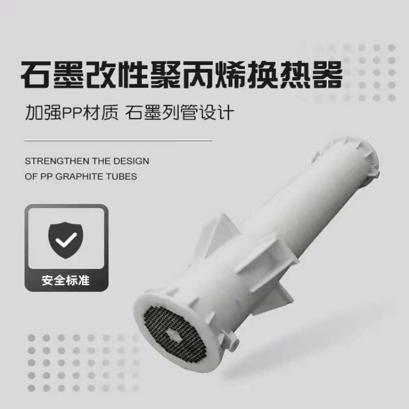 石墨改性聚丙烯列管式交換器(冷凝器),是我國近期發展起來的新型熱交換(冷凝)設備,是北京化工研究院的研究成果,國家化工部對此組織了技術鑒定,榮獲化工部重大科技成果獎。具有優異的耐酸堿鹽腐蝕性能,常溫下幾乎不被所有溶劑溶解,一般的烷、烯、烴,醇、醇、醛、酮等有機介質均可使用。廣泛應用于廣泛應用于化工,食品,醫藥,染料,化纖,冶金,紡織等工業。