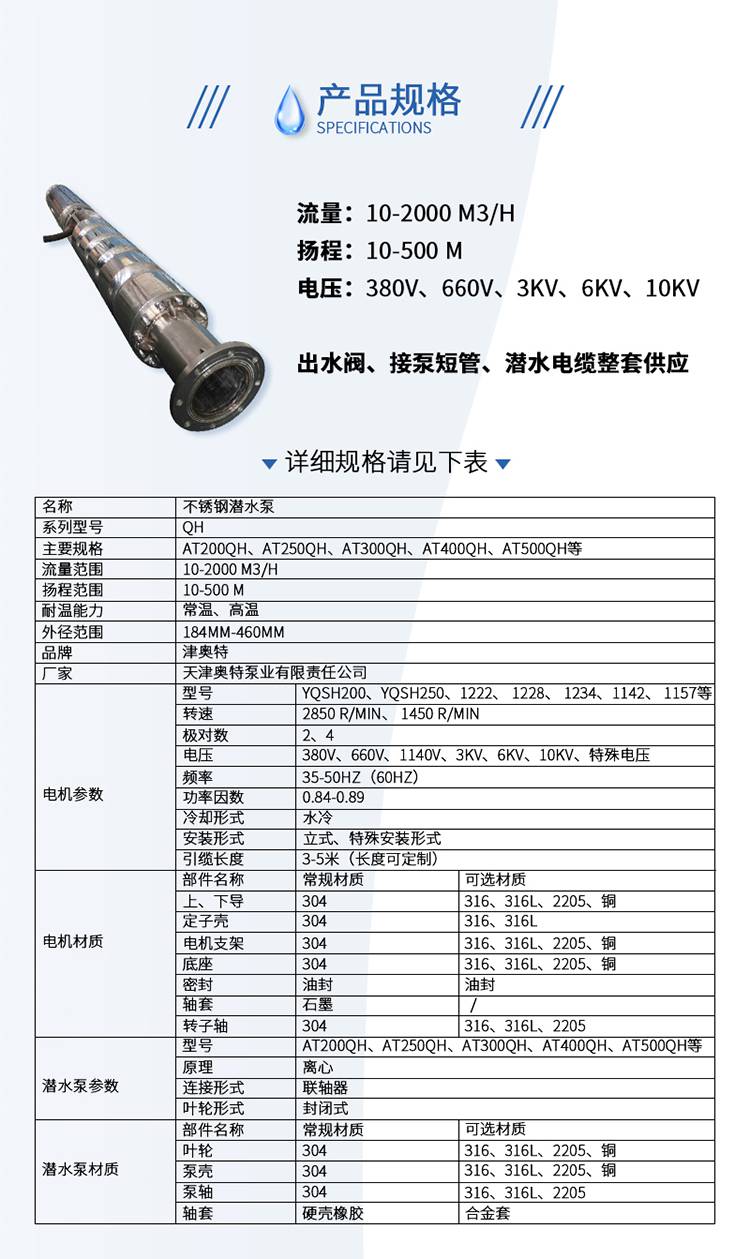 不銹鋼潛水泵,海水提升泵,海水抽水泵,防腐蝕潛水泵,是一種專為在腐蝕性環境中工作的潛水泵。它們廣泛應用于農業、工業、市政、建筑、海洋等多個領域,特別是在需要處理含有腐蝕性介質的液體時。