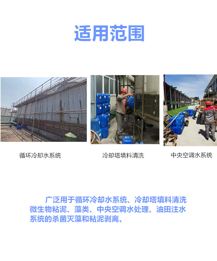 用于殺菌滅藻和粘泥剝離,防止管道堵塞和微生物腐蝕。