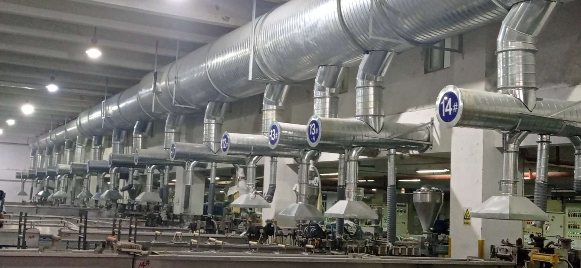 車間各工藝段生產時,通過各類集氣罩收集后通過主管在引風機的作用下進入氣轉塔,去除環境熱氣、微塵及有機物,然后通過風機加壓經過排放煙囪高空排放。