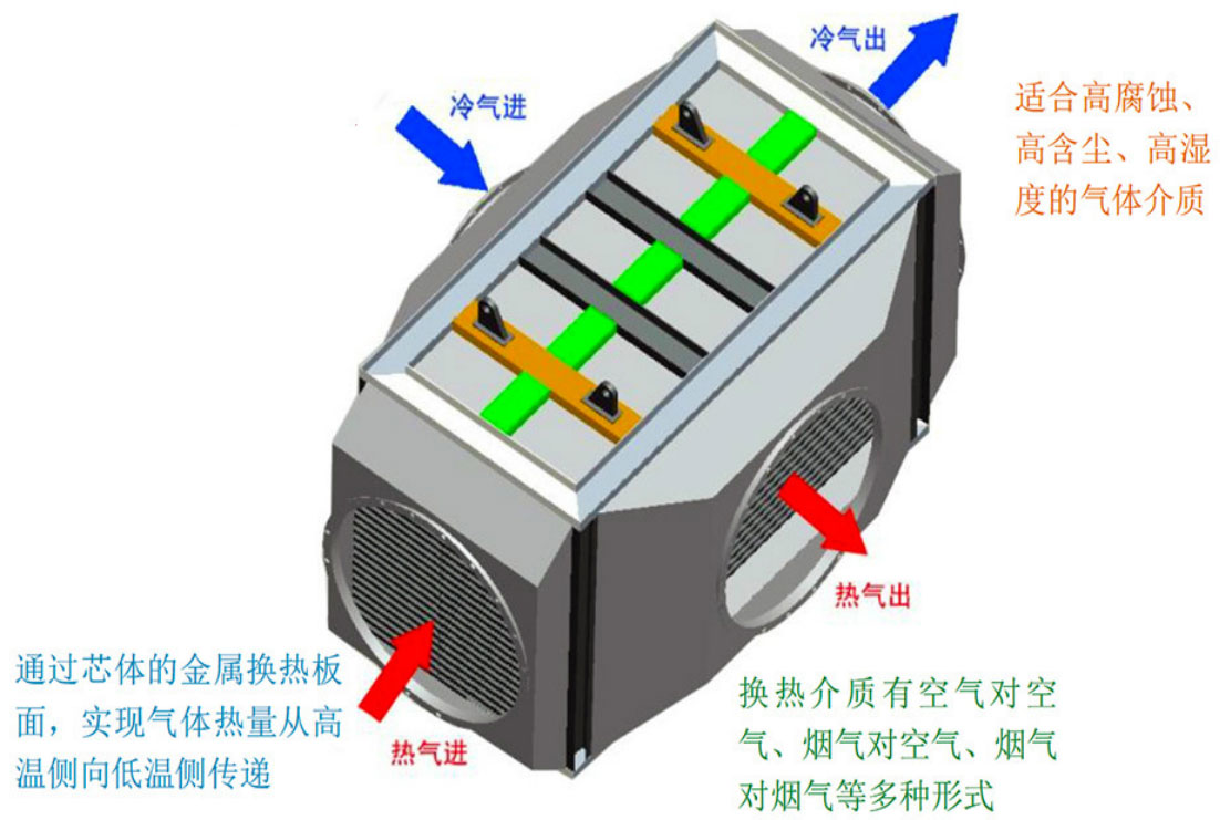 氣氣換熱器又名雙側(cè)寬流道焊接式板式換熱器或板式空氣換熱器,是我公司學(xué)習(xí)與吸收國內(nèi)外先進技術(shù)與設(shè)計理念,近幾年開發(fā)的一種新型板式熱交換器,并且取得了相應(yīng)的專利,它由一系列互相平行并壓有定距柱的的薄金屬平板相疊而成,主要由傳熱板片、外框密封板、壓緊裝置等組成。這種換熱器特別適用于氣氣換熱。