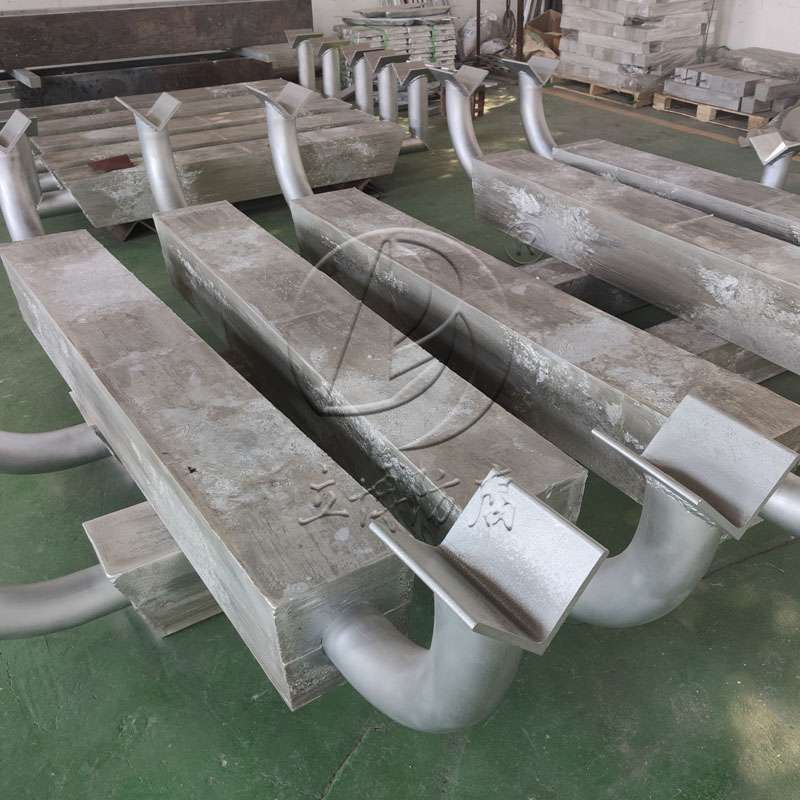 首先,鋁合金犧牲陽極具有卓越的耐腐蝕性能。在海洋環(huán)境中,鋁合金犧牲陽極通過電化學(xué)反應(yīng)的方式,犧牲自身來吸收和分散腐蝕性電流,從而降低平臺結(jié)構(gòu)的腐蝕速度。鋁合金的抗鹽水侵蝕性能和優(yōu)異的耐腐蝕性能使其成為海洋平臺防腐的可靠選擇。