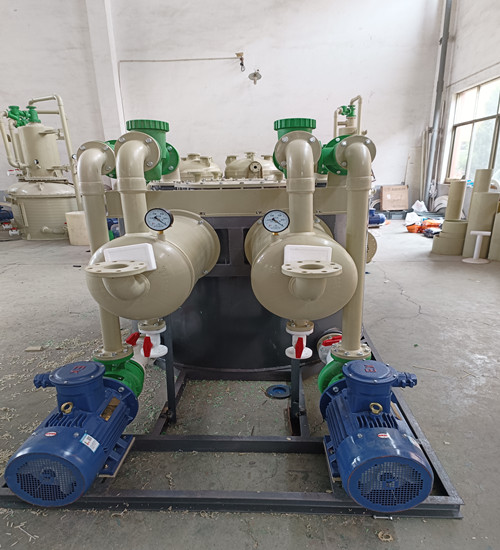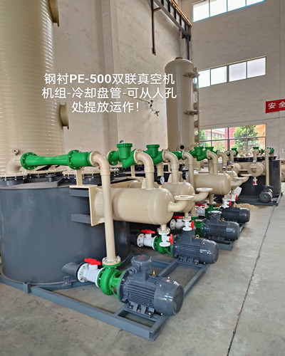 SPBZ-WD-500-雙聯(lián)套水噴射真空機(jī)組,水箱材質(zhì)PPH,筒體結(jié)構(gòu)整體纏繞成型,箱體倆頭設(shè)圓型封頭,頂部設(shè)人孔,側(cè)面配置液位計(jì),整體設(shè)計(jì)科學(xué)規(guī)范優(yōu)佳。配S100*80-32循環(huán)泵2臺(tái),流量100m3/h,揚(yáng)和32m,配15功率電機(jī)*2。RPP80-500真空泵*2,DN80止回閥*2,設(shè)備內(nèi)部所有管道彎頭法蘭球閥全部配置完善,底部設(shè)鐵支架。