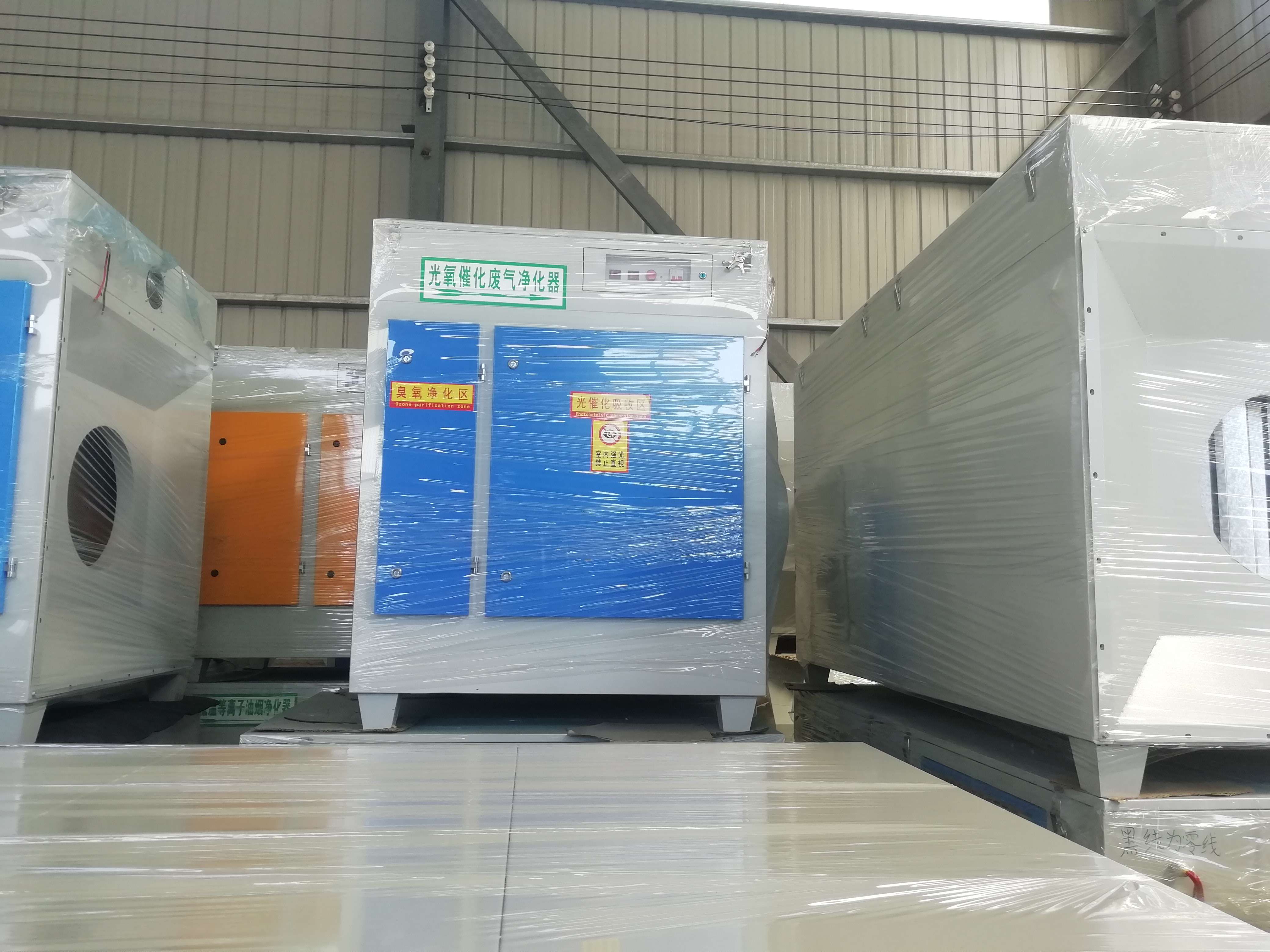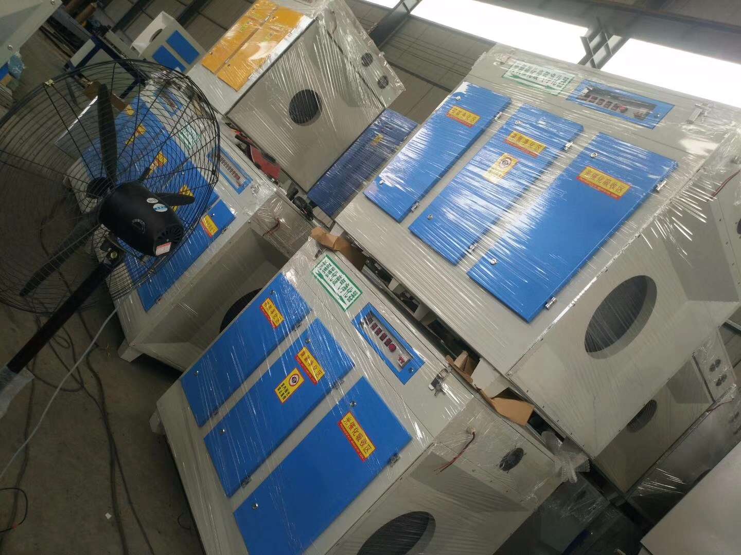 本產品利用特制的高能高臭氧UV紫外線光束照射廢氣,裂解工業廢氣如:氨、三甲胺、硫化氫、甲硫氫、甲硫醇、甲硫醚、乙酸丁酯、乙酸乙酯、二甲二硫、二硫化碳和苯乙烯,硫化物H2S、VOC類,苯、甲苯、二甲苯的分子鏈結構,使有機或無機高分子惡臭化合物分子鏈,在高能紫外線光束照射下,降解轉變成低分子化合物,如CO2、H2O等。利用高能高臭氧UV紫外線光束分解空氣中的氧分子產生游離氧,即活性氧,因游離氧所攜正負電子不平衡所以需與氧分子結合,進而產生臭氧。
