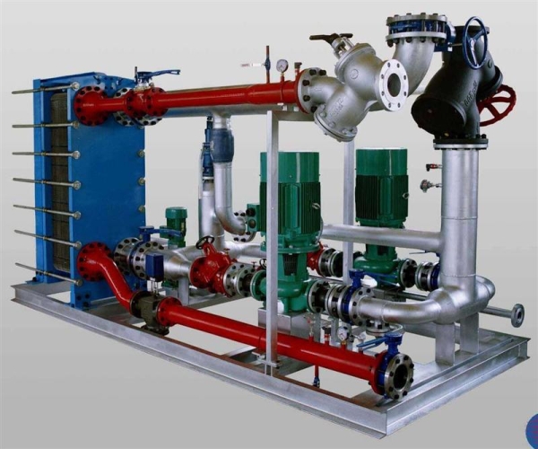 傳熱系數高:由于板片組中流動的介質在較低雷諾數(Re)時,就能形成湍流,而且光滑的板片上不易生成污垢,因此有非常高的傳熱系數。在一般的水與水熱交換中,板式換熱器的傳熱系數能達到5000W/㎡.K以上,比管殼式換熱器要高出2-4倍。